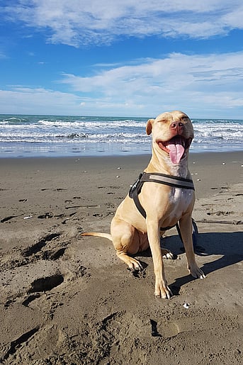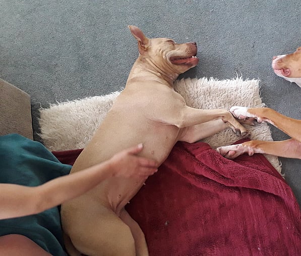 By some miracle, in 2016 on a Tuesday with no lectures to attend, I found Christchurch Bull Breed Rescue on the same road as my student flat, and they were looking for volunteers. I emailed, showed up for an induction, and I kid you not, managed to leave that day with a foster dog (Rubble, AKA Rub-a-Dubs) after my property was inspected for suitability and I was schooled on protocols.